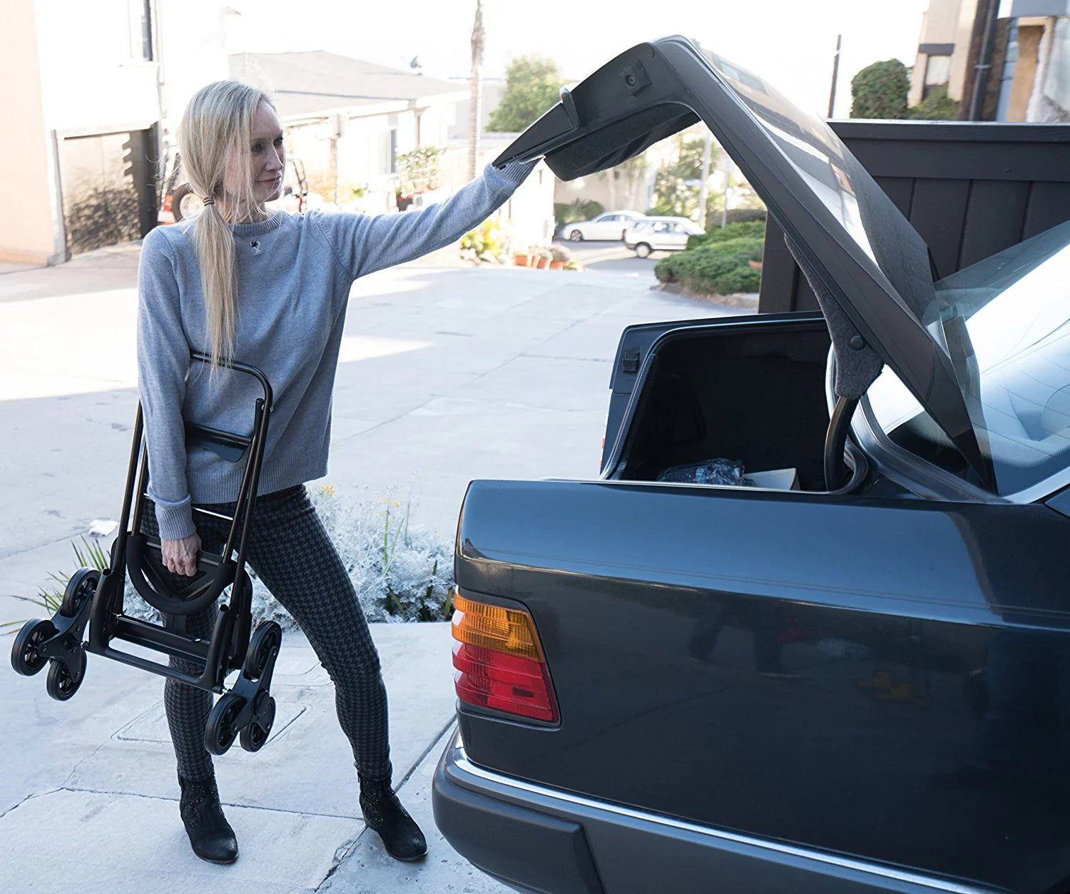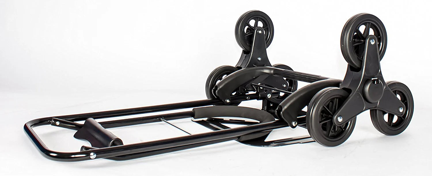 - Three-wheel designed facilitates stair climbing ability.The Stair Climber has 6 All-Terrain wheels that allow smooth rolling on most surfaces. The cart glides up and down steps and curbs with ease.
