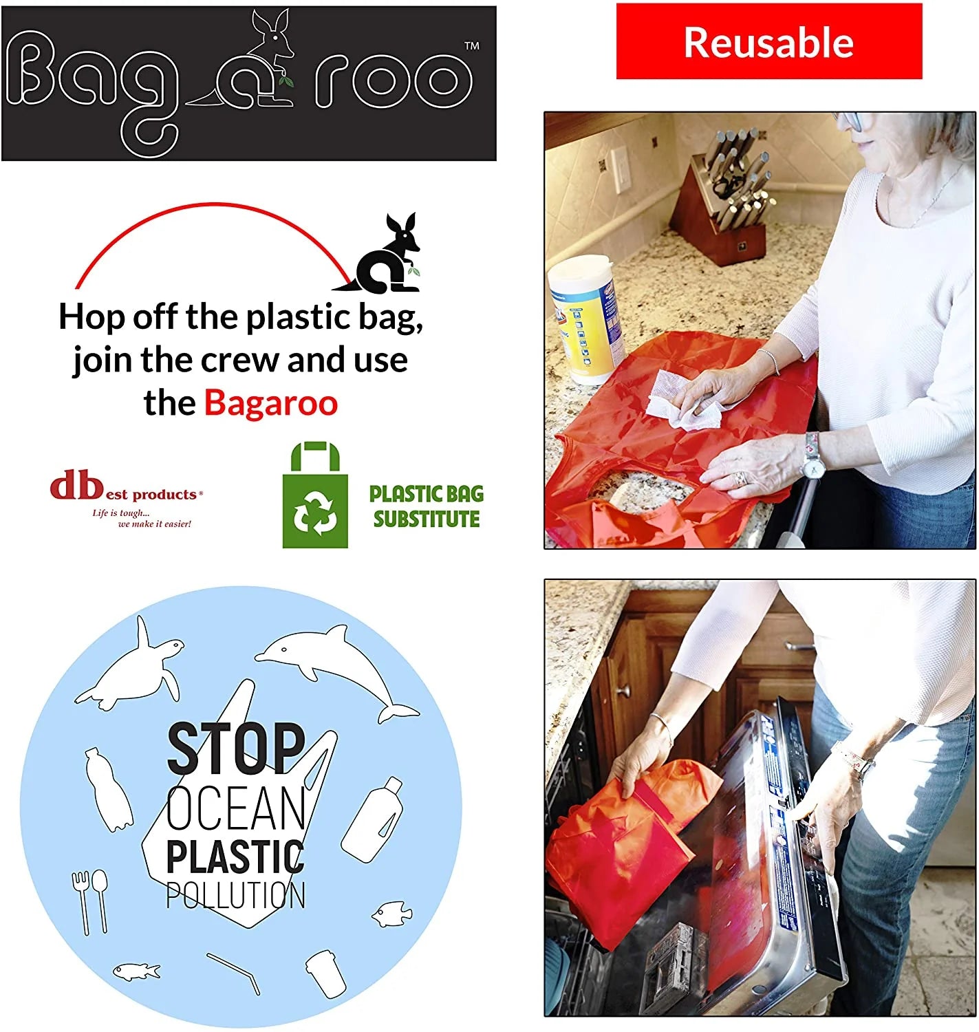- REDUCE YOUR CARBON FOOTPRINT: The Bagaroo is the Alternative to the plastic disposable shopping bags and canvas tote bags. Due your part in reducing ocean pollution and keep our marine life safe from the dangers that plastic bag create in their ecosystem.