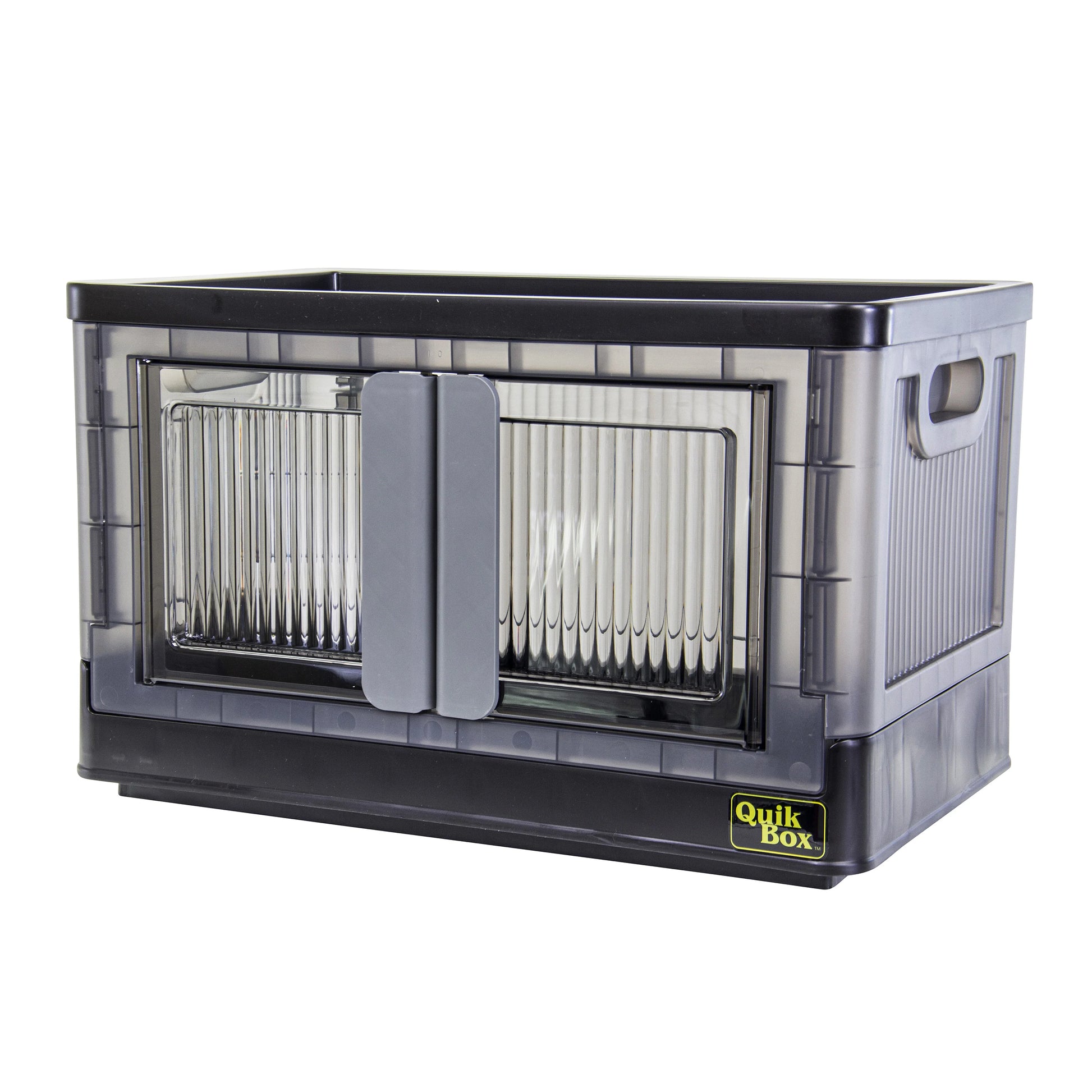 "Hey there, neat freaks and organization nuts! Meet the Quik Box, your new best friend in all things storage. This ain't your run-of-the-mill storage bin. It's a 8.5-gallon collapsible, stackable, and movable powerhouse. Made of durable plastic, the Quik Box is a foldable container that can be effortlessly collapsed when not in use. The main feature? Two front doors for easy access, even when stacked. Yep, you heard that right. These are stacking crates with doors! But we didn't stop there! We added wheels for easy mobility, and lids to keep your belongings safe. You could say these are the most versatile of Collapsible storage bins with doors. And did we mention they're stackable? These aren't just any ordinary stackable storage bins with doors. They're ideal for dorm storage, making them a must-have for college students. The Quik Box easily fits all your room essentials, functioning as a collapsible craft closet storage and even a camping storage cabinet. Whether you're looking to stow away toys, crafting supplies, clothes, food, bathroom supplies or any other items, these large collapsible storage bins got you covered. They're also great for bedroom organization, closet organizers, and storage shelves for clothes. So, why stick with boring storage options when you could have a Quik Box? Get ready to revolutionize the way you store and organize your stuff. Say goodbye to clutter and hello to a tidier, neater space with Quik Box, your ultimate storage solution. And remember, good things come in stackable, collapsible packages!"