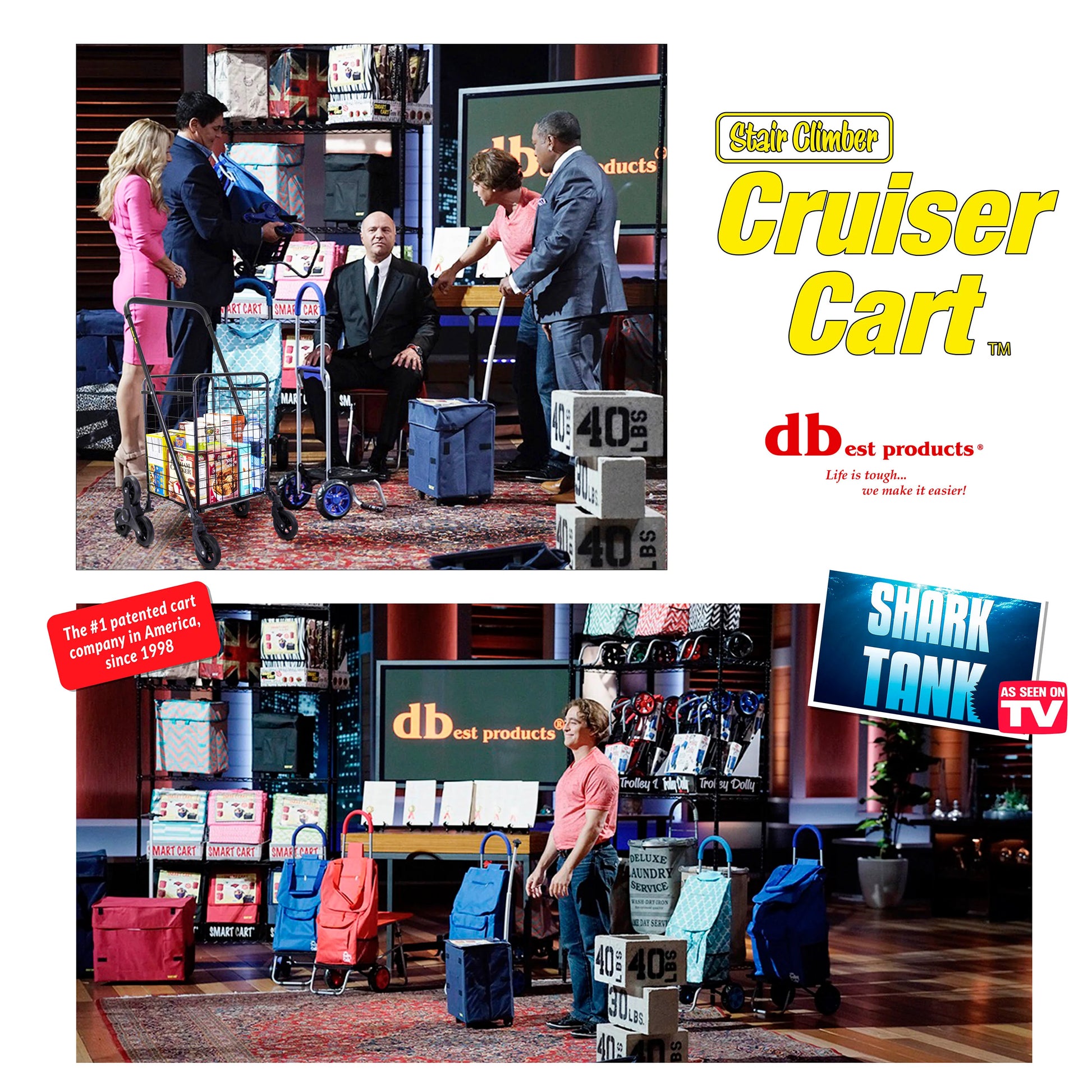 The Stair Climber Cruiser Cart is the newest cart brought to you by dbest products makers of the Trolley Dolly, the Smart Cart , the Gocart and the Quik Cart. It is sturdy rolling cart constructed of high grade tubular steel. The metal on the cart is powder coated to protected it from Rust and Abrasion. Contains an ergonomic handle that absorbs the shock when rolling on uneven terrains. Curved bend on the handle makes it easier when pulling. Folds in half for compact storage. Includes a lock mechanism that keeps cart in it's folded position for easy storage. store it in the trunk of your car, hang it on a peg. Tires made of high density EVA reduces the vibration over any curb so your commute from the grocery store to home or apartment is stress free as possible. Being Slim and Light makes the ideal for anybody in the family from mom to the elderly. whether your Moving supplies in the office or gardening tools in your patio makes this folding cart your best friend.