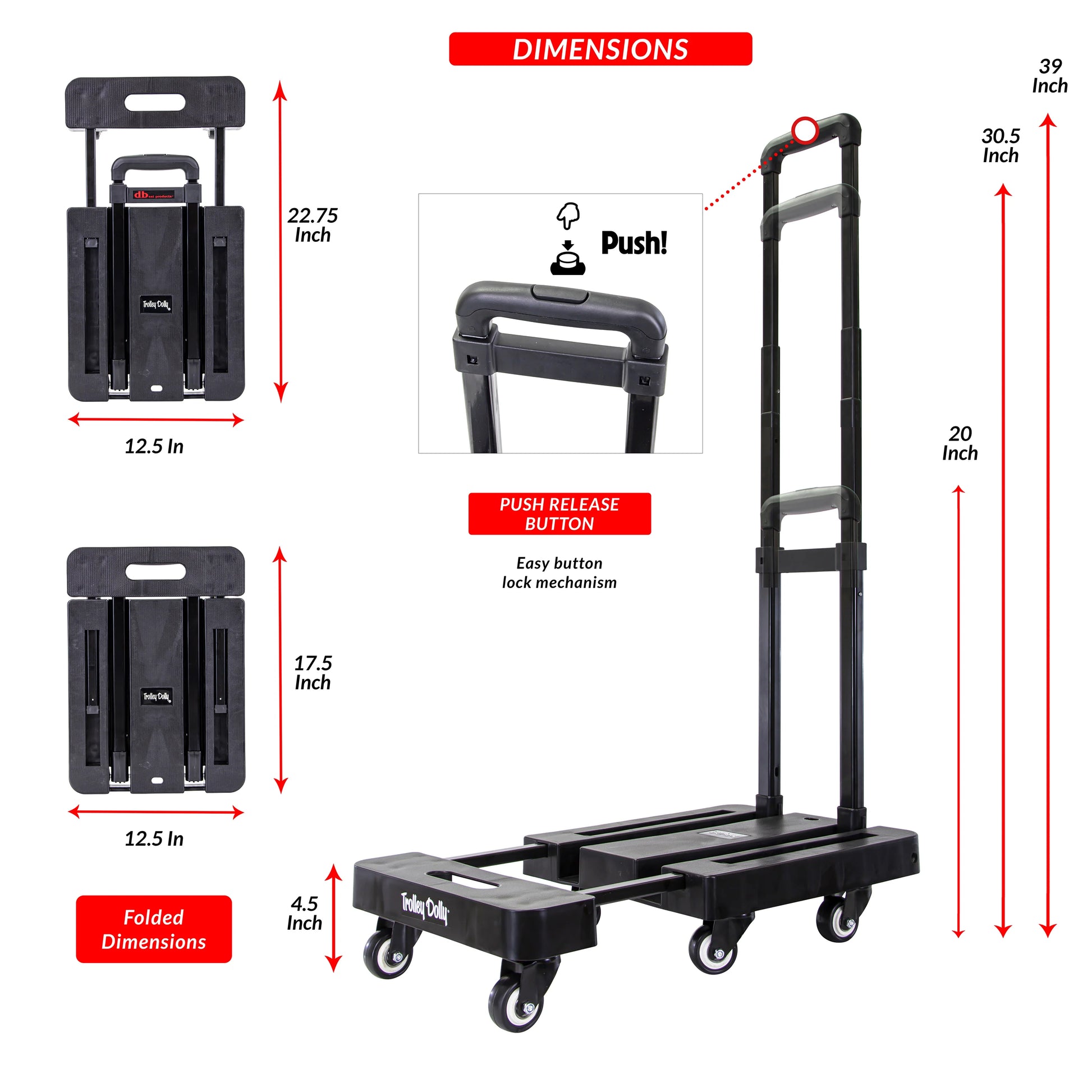 - Foldable & Portable: Our portable dolly folds in 1/2 for compact storage. Being lightweight folding trolley with a strong build makes it the perfect foldable moving cart for all your needs.