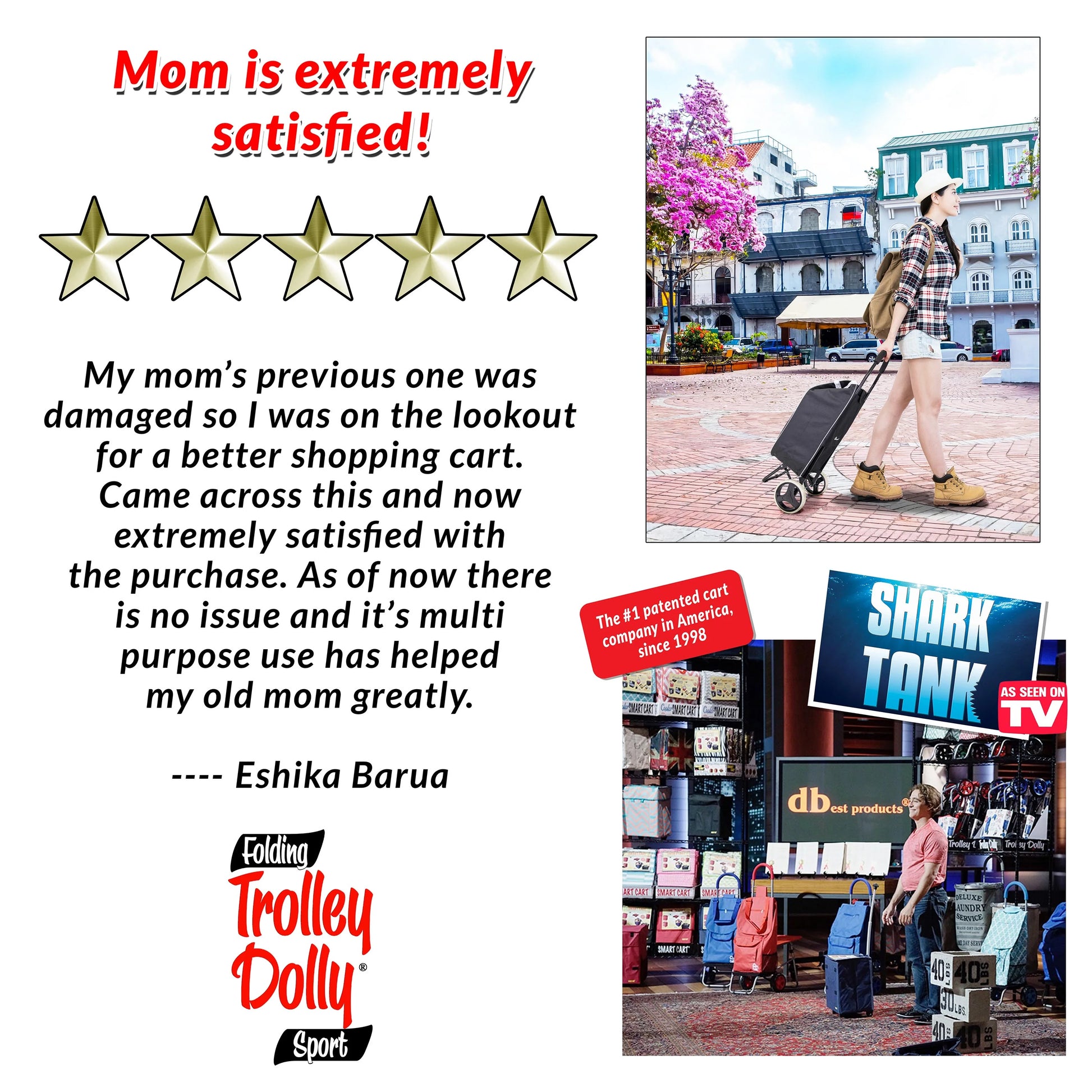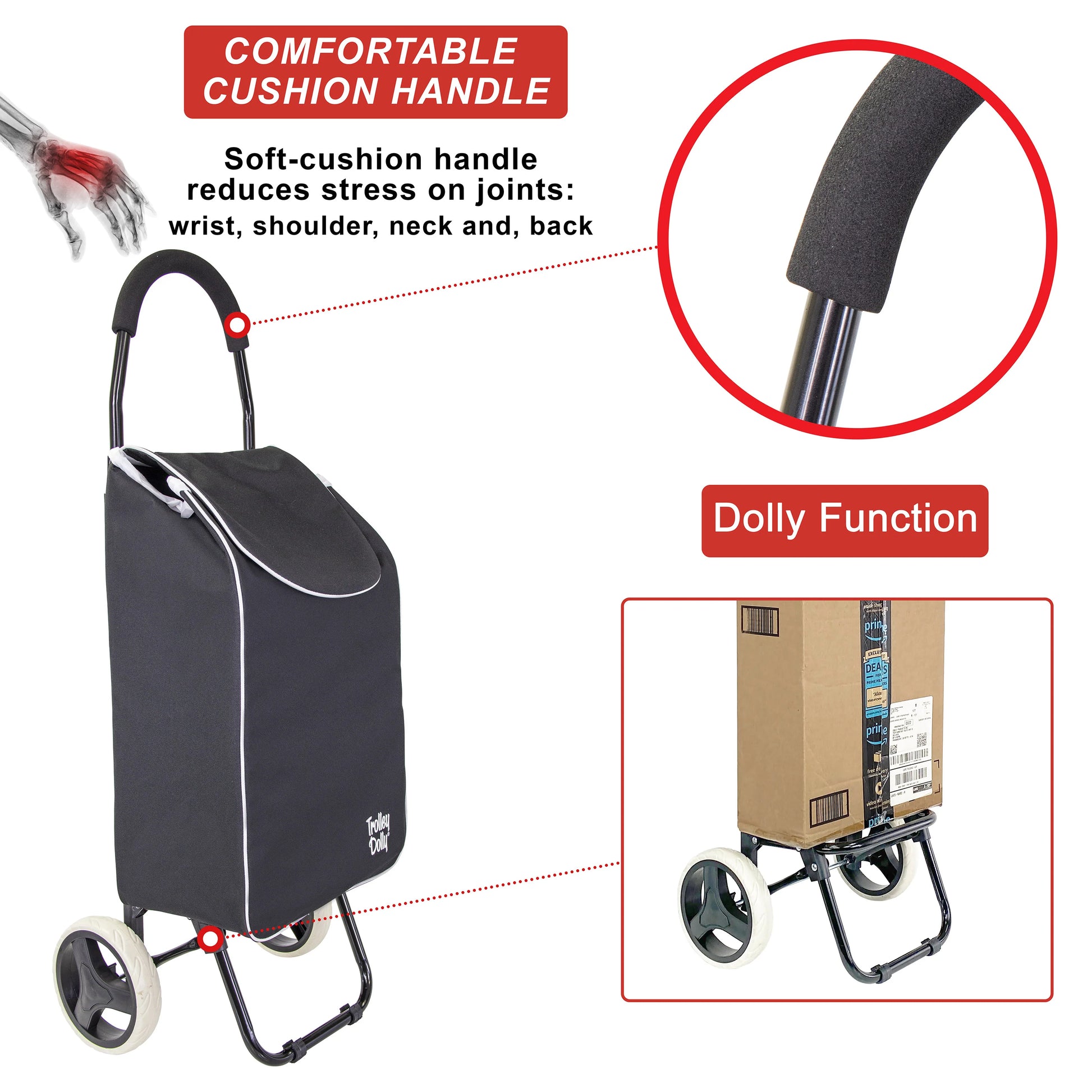 dbest products Trolley Dolly Sport Foldable Shopping cart for Groceries with Wheels and Removable Bag and Rolling Personal Handtruck Carrito de Compras con Ruedas, Black