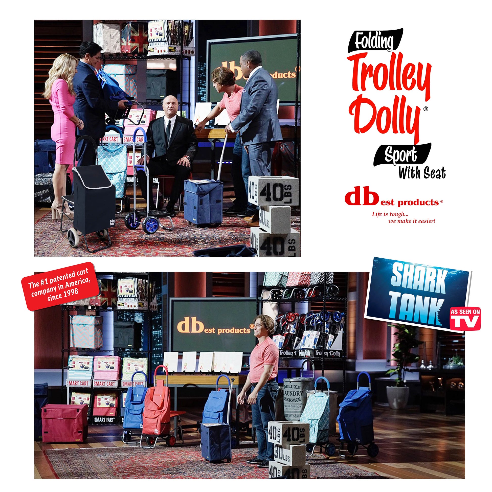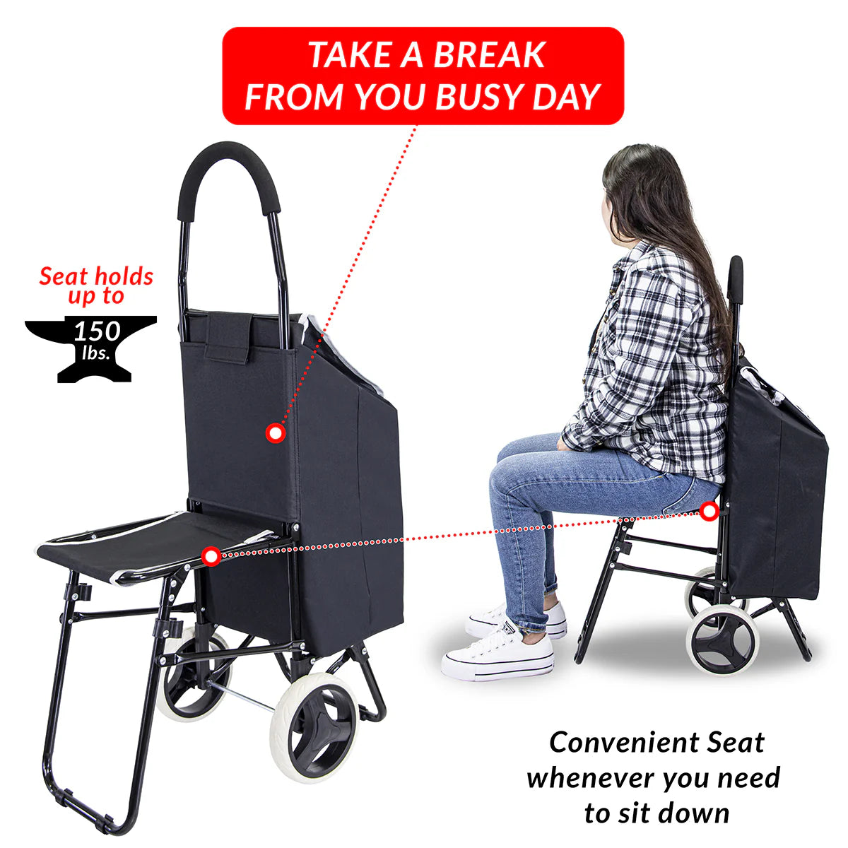 dbest products Trolley Dolly with Seat Sport, Black Shopping Grocery Foldable Cart Tailgate