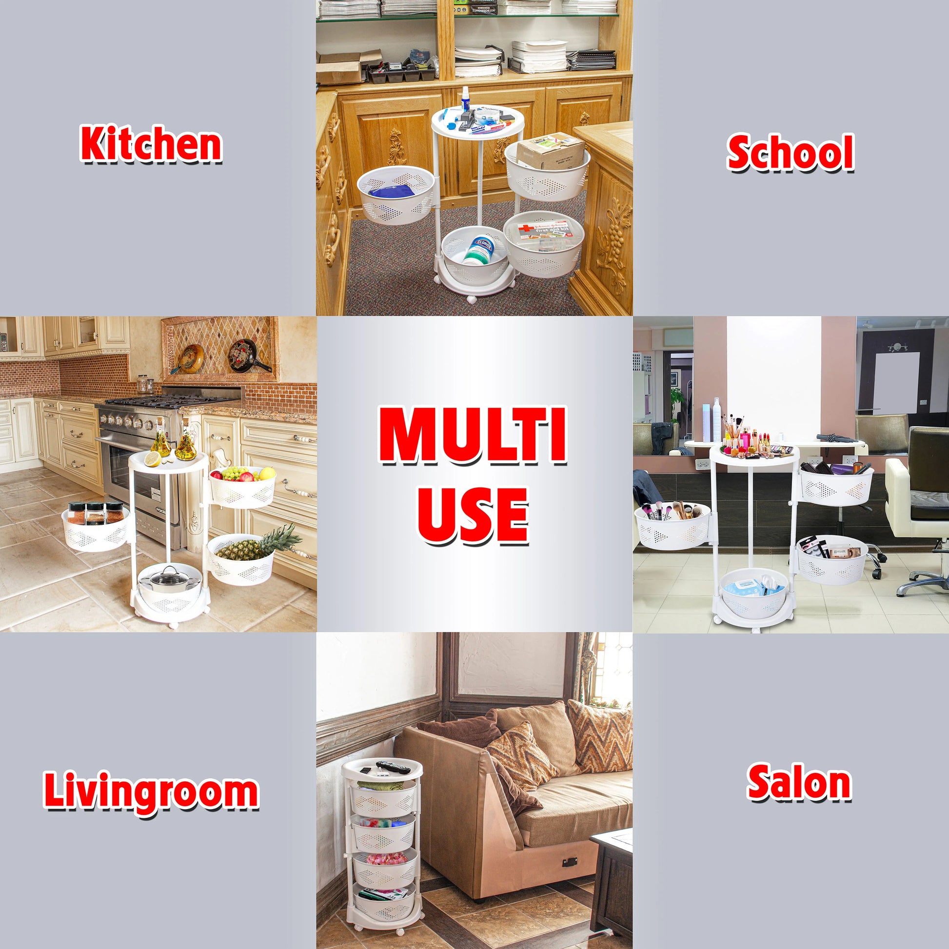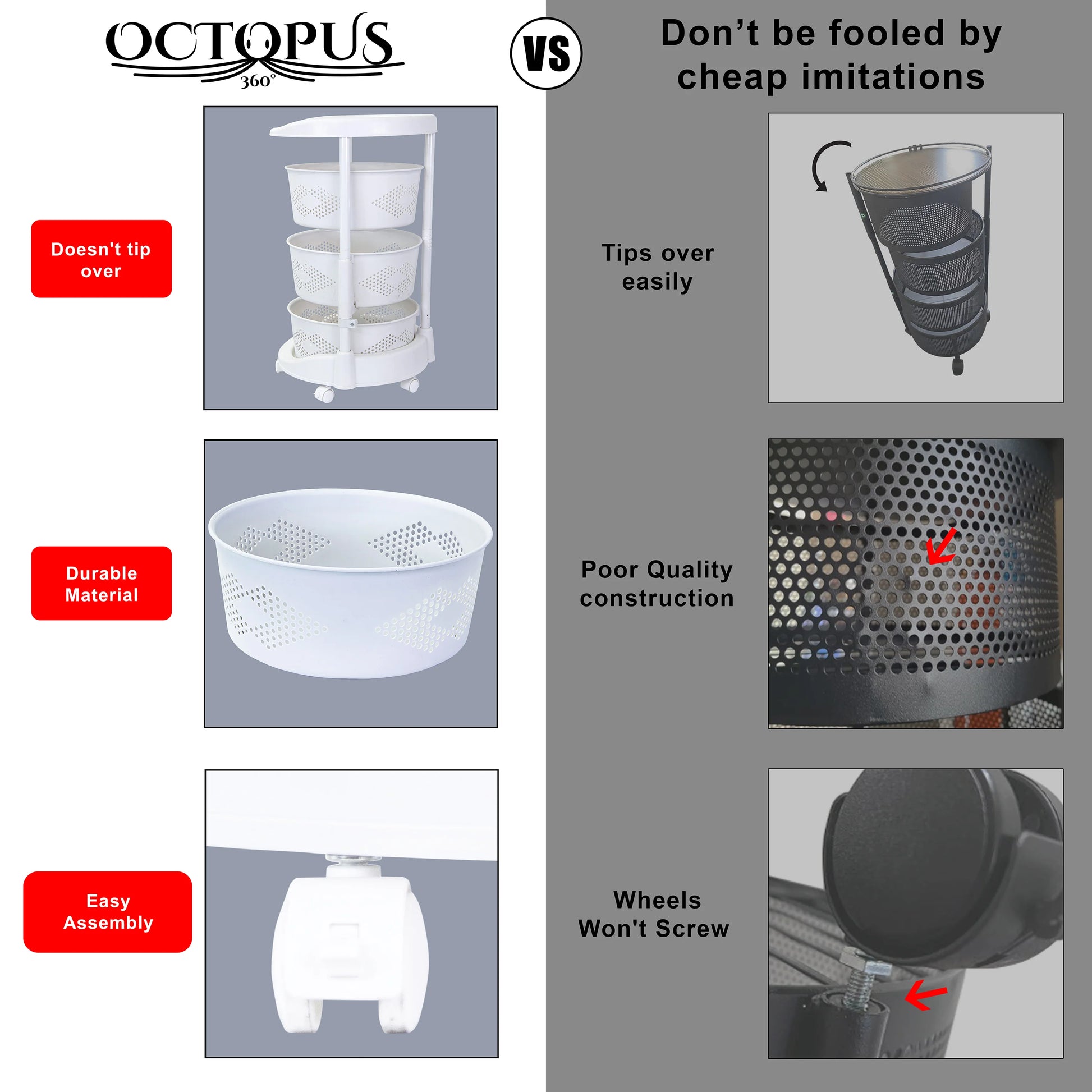 Octopus 360 4 Tier Rolling Cart Kitchen Organization Plastic Rotating Fruit Basket Teacher Classroom Supplies Organizer Makeup Storage Hair Salon Trolley Swivel Lockable Wheels Bar