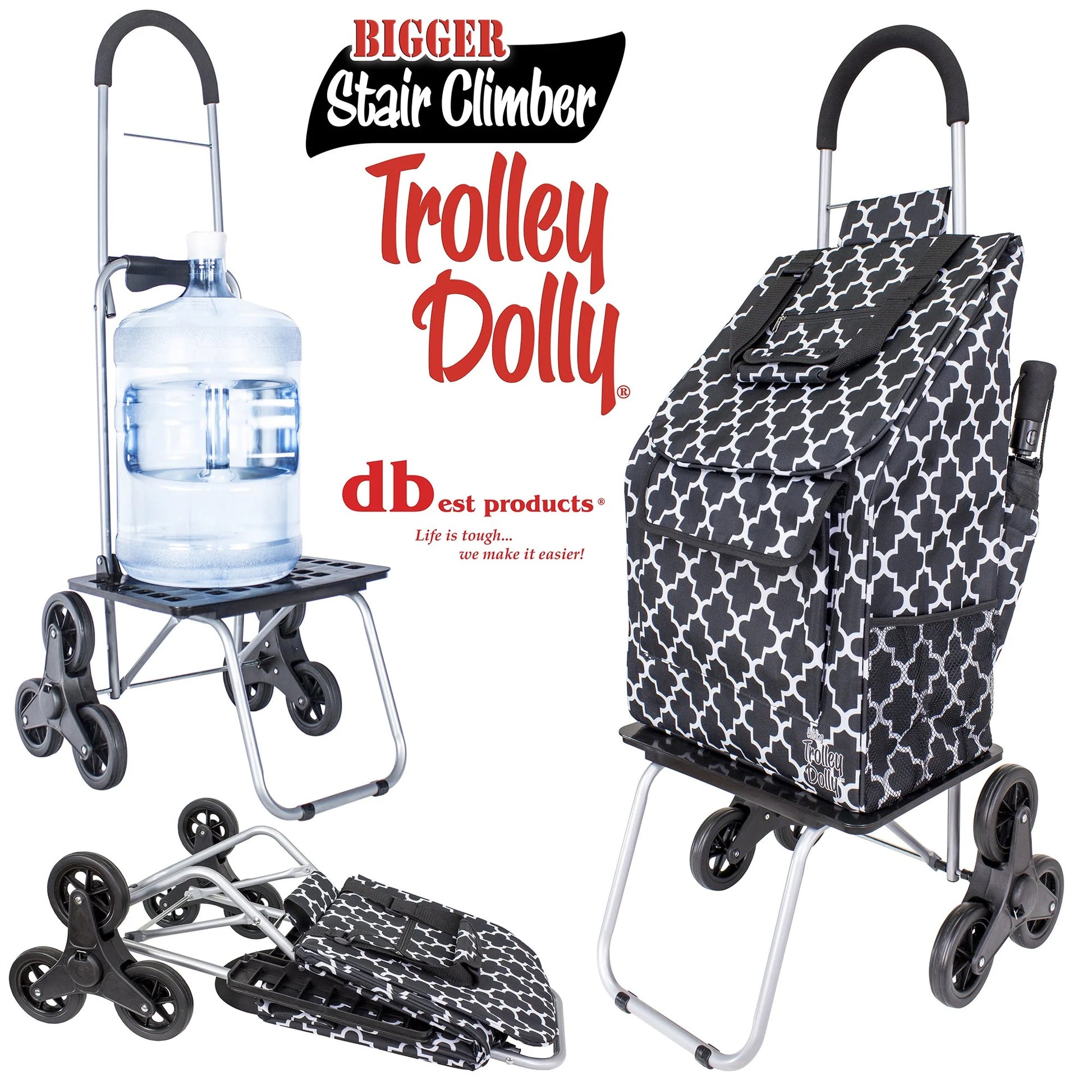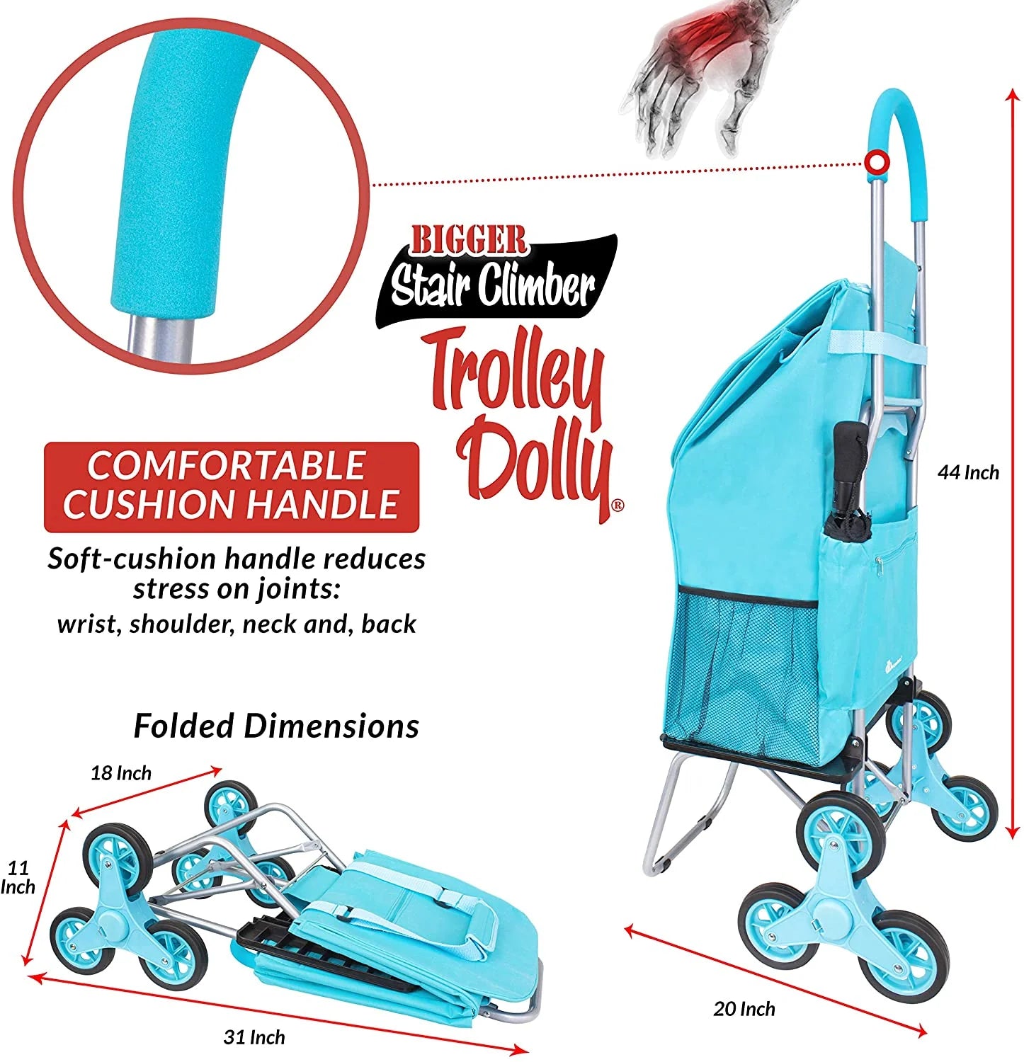 Stair climber: Our folding stair climber bigger trolley dolly cart perfectly balances lightweight capability with durability and features 6-wheel design that glides up and down stairs with ease. Take it to the supermarket, flea market or the beach.