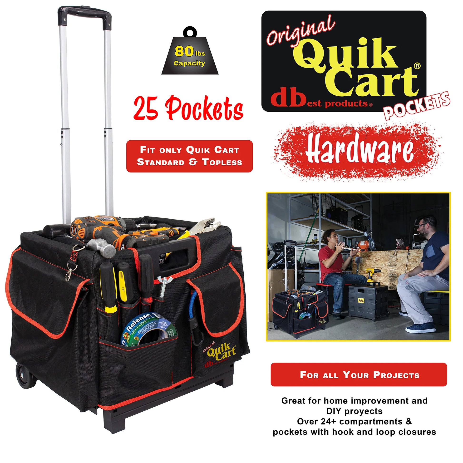 - TWO-WHEELED COLLAPSIBLE HANDCART WITH RETRACTABLE TELESCOPIC HANDLE: Slide this saddle bag cover over your Quik Cart and it transforms it to a organizer cart. Includes 25 compartments and pockets. Ideal for craft, art, scrapbook, and sewing hobbyists.