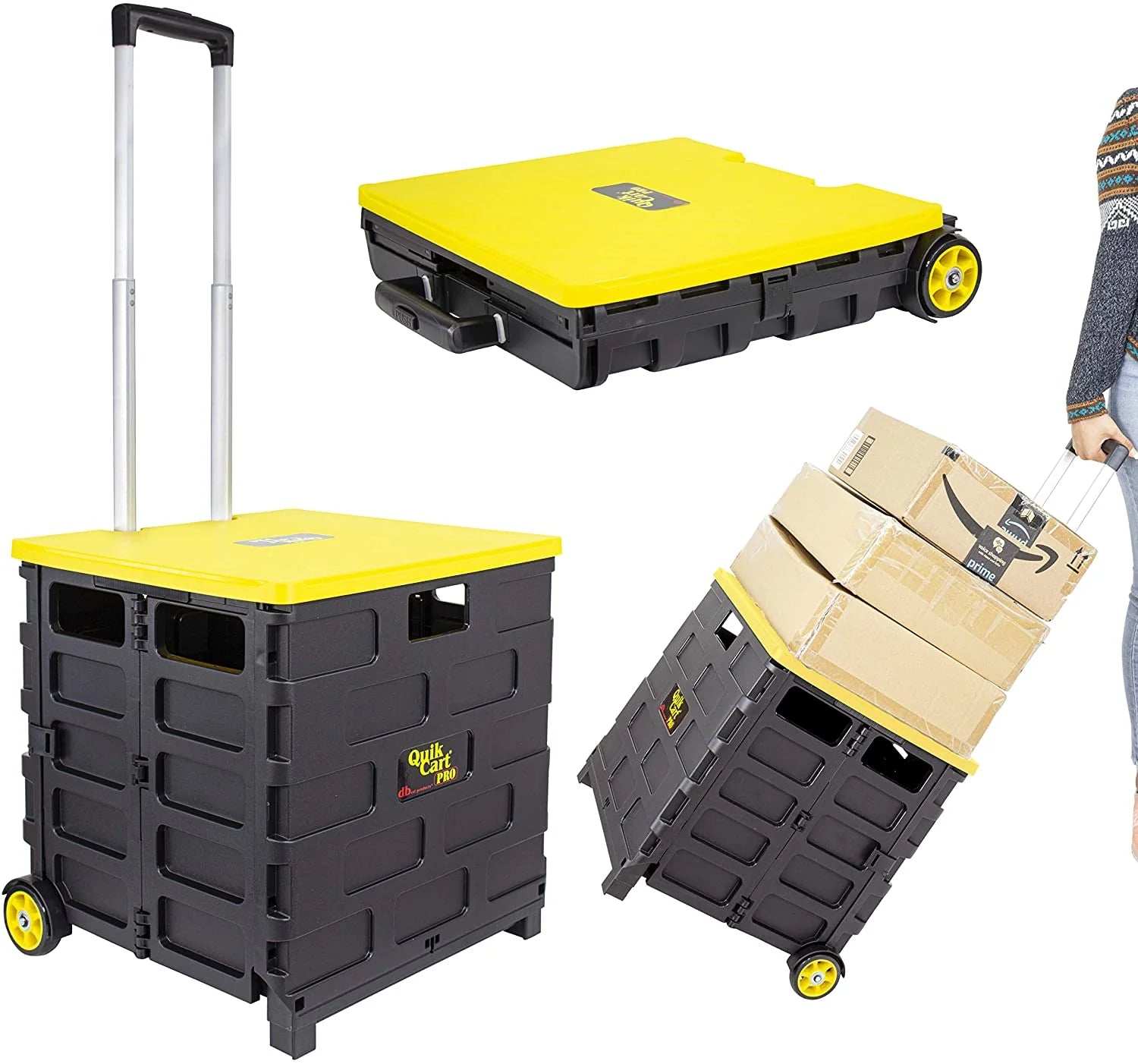 - BUILD TO LAST: Folds down to only 3-inches thick for compact storage weighs less than 8-pounds. ideal for groceries, milk Rolling totes, pull cart and plastic crate are ideal file organizers, rolling utility cart.