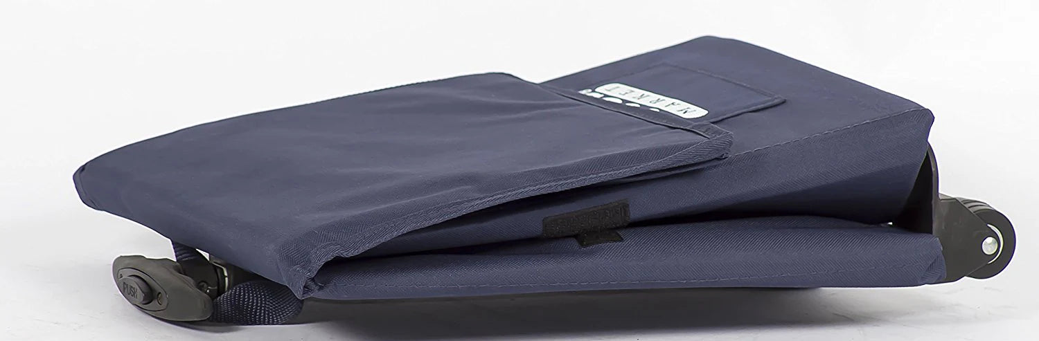 This multi-purpose folding basket is perfect and convenient for anyone on the go! Unlike an ordinary cart, this Folding cart has wheels and an extendable handle for easy maneuverability. It has a front pocket for easy access items. This cart folds down for compact storage. It weighs less than 4lbs.