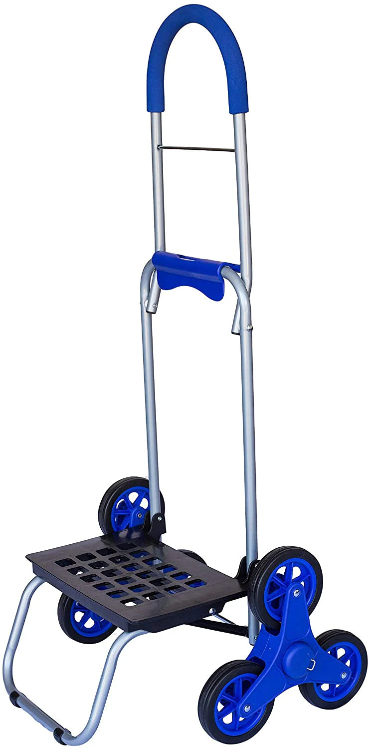 - LIGHT AND USEFUL: The Stair Climber Trolley Dolly MM Dolly has a foldable frame that holds 150 lbs. and weighs only 5 lbs. Balances lightweight capability with durability. Take it to the market or club store. Features 6-wheel design that glides up and down stairs with ease.