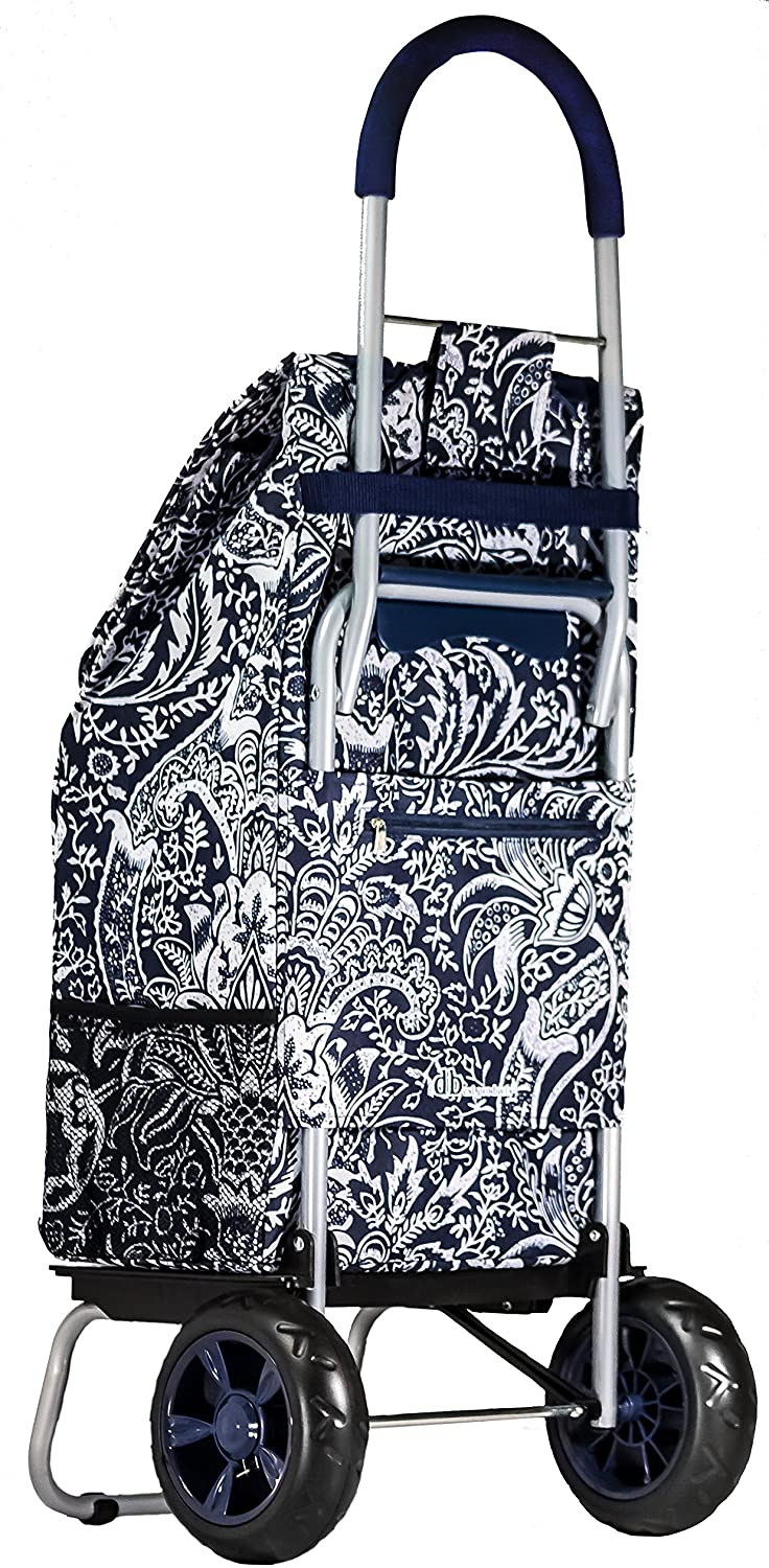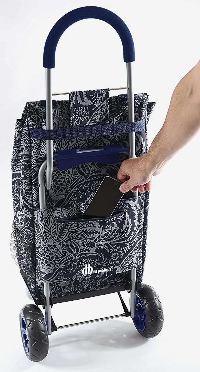 - Grocery shopping rolling cart with detachable weatherproof shopping bag.