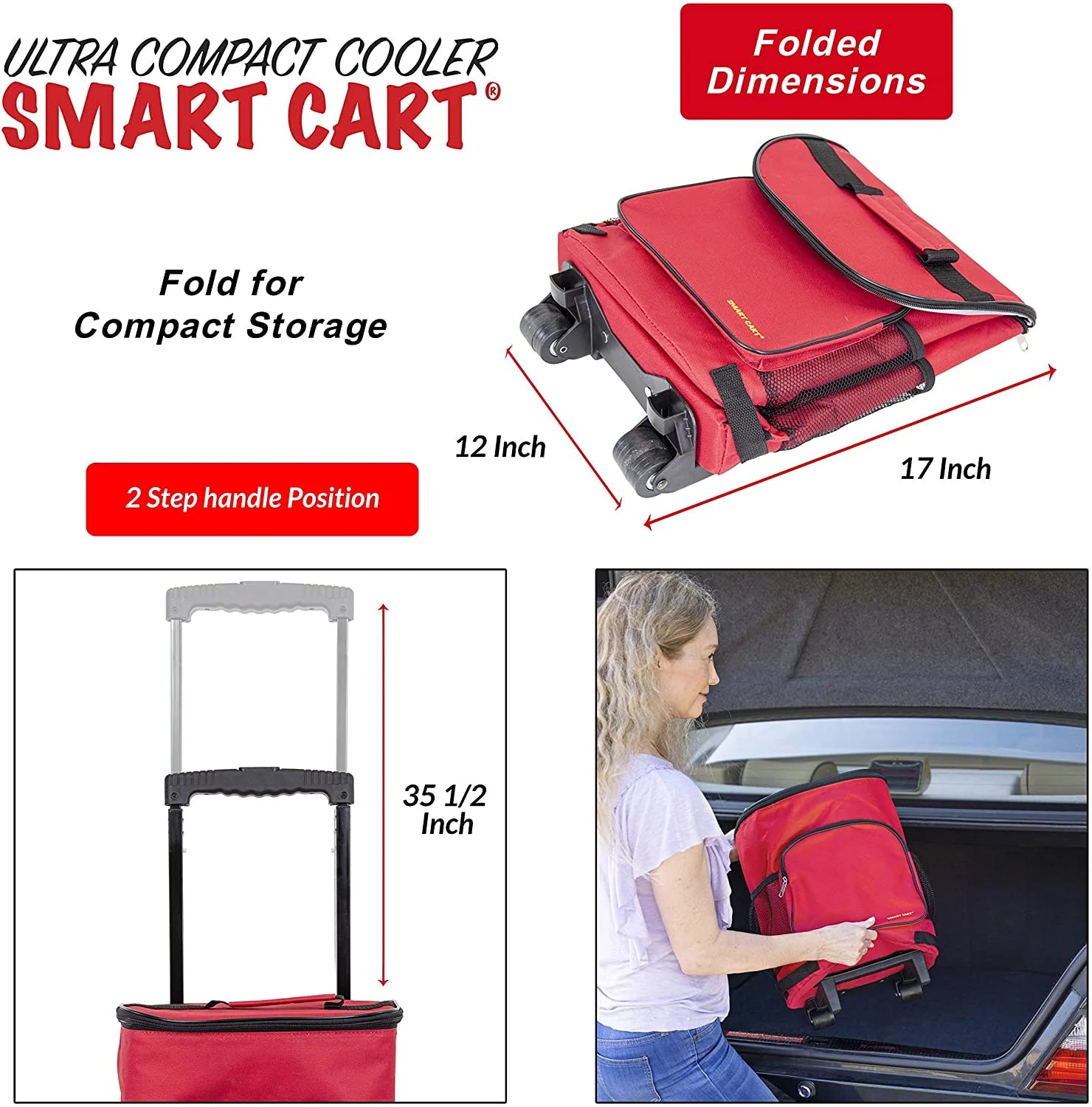 LIGHT AND CONVENIENT: Weighs less than 3 lbs. and folds Flat for storage. Useful for light trips to the grocery. Keeps your ice cream and popsicles chilled to its fullest. Locking telescoping handle for comfort and stability when pulling or pushing this wheeled tote.